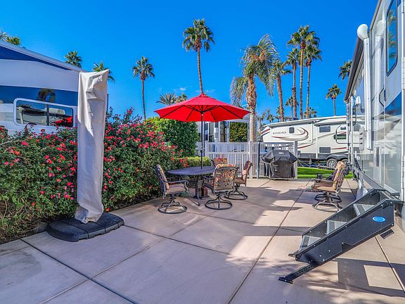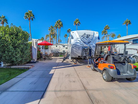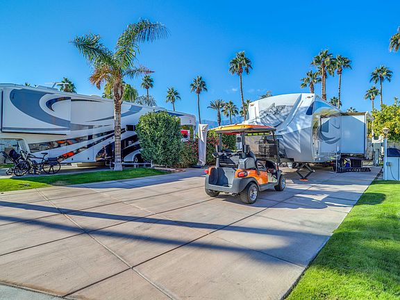 Nice lot with new concrete and landscaping with a great location close to El Saguaro Clubhouse for easy access to all the major events and the golf starter shack. Outdoor Resorts Palm Springs is a Five Star RV Resort Community combining luxury with affordability. It is a guard gated resort that sits on 137 beautifully landscaped acres with 27 holes of executive golf, 10 tennis courts, 13 pickleball courts, 8 swimming pools, a fully equipped fitness center, espresso bar, sports bar, beauty salon/barber shop, full-service restaurant, convenience store, 2 club houses, activities, special events and so much more.