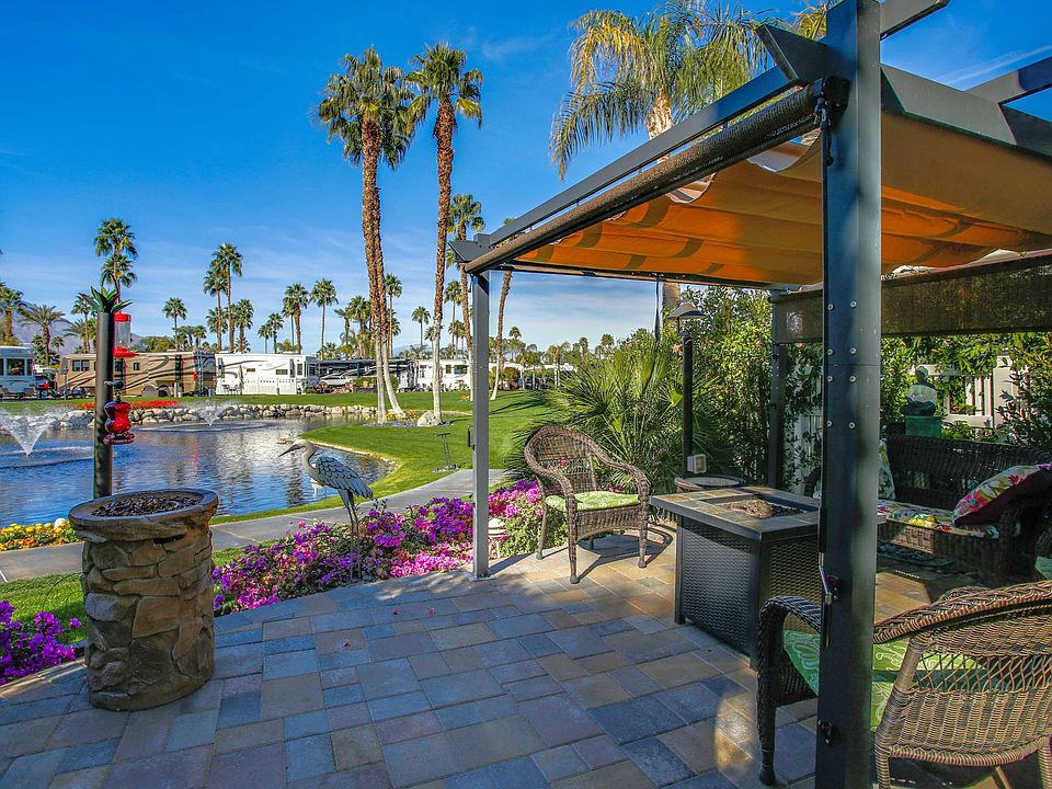 Nothing put into words can express the beauty of this lot. With morning and afternoon sun, 2 ponds with water features across the back 9-hole golf course. San Jacinto Mountain views! A complete outdoor kitchen, this is truly a chefs delight. You will be the ultimate host with several seating areas, a moveable ''roofed'' gazebo surrounded by plush greenery on the enviable corner. Outdoor Resorts Palm Springs is a Five Star RV Resort Community combining luxury with affordability. It is a guard gated resort that sits on 137 beautifully landscaped acres with 27 holes of executive golf, 10 tennis courts, 13 pickleball courts, 8 swimming pools, a fully equipped fitness center, espresso bar, sports bar, beauty salon/barber shop, full-service restaurant, convenience store, 2 club houses, activities, special events and so much more.