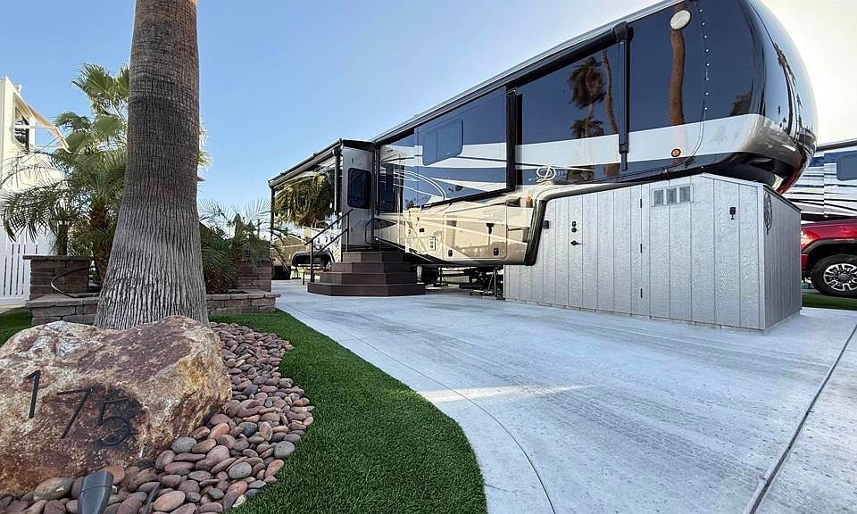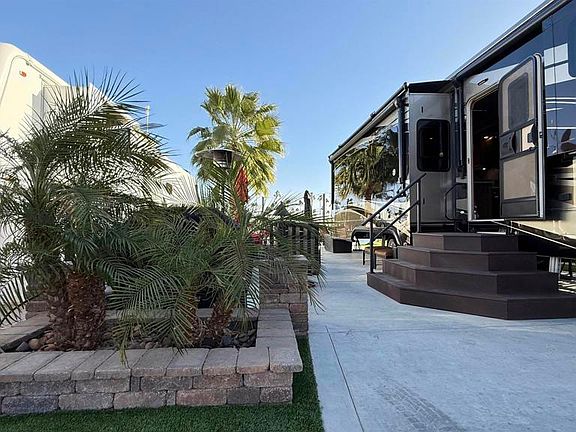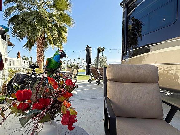 Lot 175, A truly PREMIER luxury space awaits you on the front 18 golf course. Panoramic views of surrounding mountain peaks and unparalleled golf course views. You see the entire length of the golf course and the water features on the course. Beautiful flowers are kept meticulously in your backyard. The lot has new exposed concrete and over $15,000 of wonderful deep seating. Outdoor Resort Palm Springs (ORPS) is a Guard Gated 5-Star RV Resort Community offering an active and luxurious lifestyle featuring golf (27 holes), tennis, pickleball, swimming and more! Two clubhouses, fitness center, beauty solan, La Roma Restaurant on campus, dog park and more!