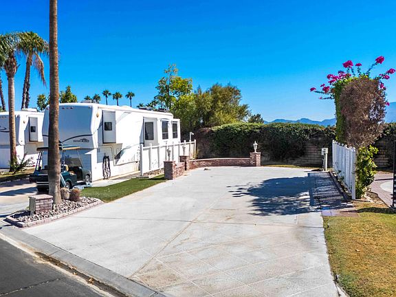 Adjacent to the lush Orchard at Outdoor Resorts Palm Springs, this wall lot package offers unparalleled privacy and charm. Mature hedges and a west-facing fence ensure seclusion, while a small greenbelt adds to the tranquility. Embrace luxury RV living in this exclusive retreat.Outdoor Resorts Palm Springs is a Five Star RV Resort Community combining luxury with affordability. It is a guard gated resort that sits on 137 beautifully landscaped acres with 27 holes of executive golf, 10 tennis courts, 13 pickleball courts, 8 swimming pools, a fully equipped fitness center, beauty salon/barber shop, full-service restaurant, convenience store, 2 club houses, activities, special events and so much more.
