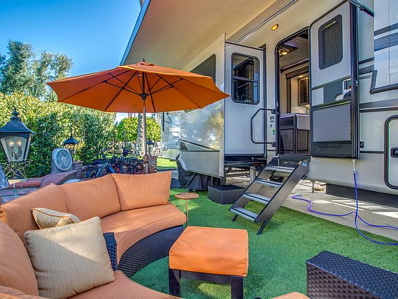 This amazing lot and RV are being sold as a package. Brand new 41' 2022 Keystone Montana with a front living room that looks straight out to amazing San Jacinto Mountain views. This is a true package that includes a golf cart with brand new batteries, firepit pub table with 4 chairs, sectional couch, BBQ and two electric bikes. Bring your food and clothes and start enjoying your resort living. Outdoor Resorts Palm Springs is a Five Star RV Resort Community combining luxury with affordability. It is a guard gated resort that sits on 137 beautifully landscaped acres with 27 holes of executive golf, 10 tennis courts, 13 pickleball courts, 8 swimming pools, a fully equipped fitness center, espresso bar, sports bar, beauty salon/barber shop, full-service restaurant, convenience store, 2 club houses, activities, special events and so much more.