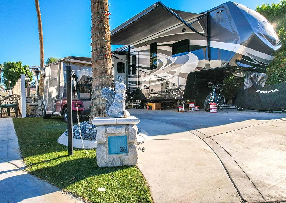 Seize the opportunity to acquire a pristine, turn-key RV package on a beautifully situated interior lot. Enjoy ultimate convenience with this location near the front of the resort, ensuring effortless entry and exit, and its position adjacent to Satellite A for quick access to amenities. The centerpiece of this offering is a luxurious 2019 Luxe Gold RV, presented in absolutely pristine condition. This high-end motorhome is ready for immediate enjoyment, allowing you to seamlessly begin your Palm Springs desert lifestyle. Outdoor Resorts Palm Springs is a Five Star RV Resort Community combining luxury with affordability. It is a guard gated resort that sits on 137 beautifully landscaped acres with 27 holes of executive golf, 10 tennis courts, 13 pickleball courts, 8 swimming pools, a fully equipped fitness center, sports bar, beauty salon/barber shop, full-service restaurant, 2 club houses, activities, special events and so much more.