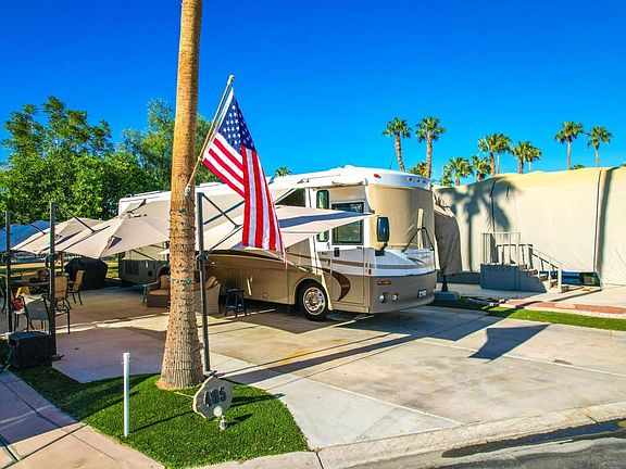 This beautiful lot is located on a quiet destination street and backs up to satellite C. So, it is like having your own pool/spa. A must see.Outdoor Resorts Palm Springs is a Five Star RV Resort Community combining luxury with affordability. It is a guard gated resort that sits on 137 beautifully landscaped acres with 27 holes of executive golf, 10 tennis courts, 13 pickleball courts, 8 swimming pools, a fully equipped fitness center, espresso bar, sports bar, beauty salon/barber shop, full-service restaurant, convenience store, 2 club houses, activities, special events and so much more.