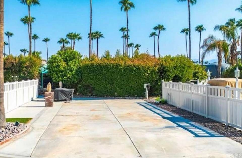 Lot 41, Convenient to the neighborhood tennis court, pool, jacuzzi, laundry and perfectly maintained bathrooms, this south to north oriented space with nice concrete offers wonderful morning sun and afternoon shade. Surrounded by lush green hedging it’s convenient to the resort entrance, large LaPalma clubhouse and restaurant. Outdoor Resort Palm Springs (ORPS) is a Guard Gated 5-Star RV Resort Community offering an active and luxurious lifestyle featuring golf (27 holes), tennis, pickleball, swimming and more! Two clubhouses, fitness center, beauty solan, La Roma Restaurant on campus, dog park and more!