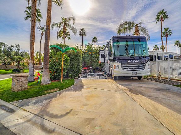 Privacy is important and this lot has it. Nice corner lot with mature hedges. that offer complete privacy. This listing is for the lot only. The location is great, and it is very close to the entrance for easy egress & ingress, the La Palma Clubhouse, Fitness Center, Restaurant & Convenience store.Outdoor Resorts Palm Springs is a Five Star RV Resort Community combining luxury with affordability. It is a guard gated resort that sits on 137 beautifully landscaped acres with 27 holes of executive golf, 10 tennis courts, 13 pickleball courts, 8 swimming pools, a fully equipped fitness center, espresso bar, sports bar, beauty salon/barber shop, full-service restaurant, convenience store, 2 club houses, activities, special events and so much more.