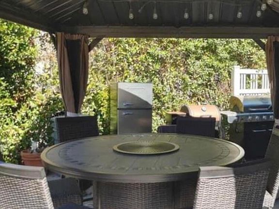 What a great deal. So much included with this lot. First we have the location close to Satellite A and La Palma clubhouse. Invite your friends over because this lot includes so much-10x12 gazebo, fire table, gas grill, large umbrella, outdoor refrigerator/freezer, 2 outdoor storage units. All outdoor furniture includes newer covers. Easy to care for artificial turf and private white fencing.RV EXCLUDED