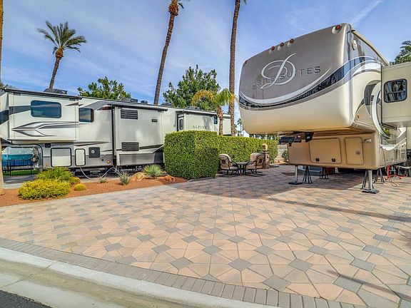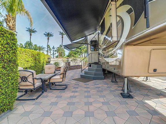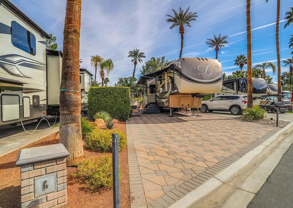 Location, location, location! This lot is located across the street from the golf course and close to the entrance and exit for easy access. This lot has been remodeled, expanded and extended with pavers and a gorgeous privacy hedge. Views are abundant from this beautiful lot. Outdoor Resorts Palm Springs is a Five Star RV Resort Community combining luxury with affordability. It is a guard gated resort that sits on 137 beautifully landscaped acres with 27 holes of executive golf, 10 tennis courts, 13 pickleball courts, 8 swimming pools, a fully equipped fitness center, espresso bar, sports bar, beauty salon/barber shop, full-service restaurant, convenience store, 2 club houses, activities, special events and so much more.