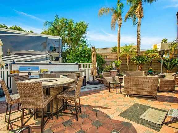 This superb, fully expanded wall lot is ideal for entertaining. It features a beautifully designed outdoor kitchen with a BBQ, gas range, oven, and refrigerator. High-end patio furniture and umbrellas are included, creating a move-in-ready, stylish outdoor setup that's ready to enjoy! Outdoor Resorts Palm Springs is a Five Star RV Resort Community combining luxury with affordability. It is a guard gated resort that sits on 137 beautifully landscaped acres with 27 holes of executive golf, 10 tennis courts, 13 pickleball courts, 8 swimming pools, a fully equipped fitness center. beauty salon/barber shop, full-service restaurant. convenience store. 2 club houses, activities, special events and so much more.
