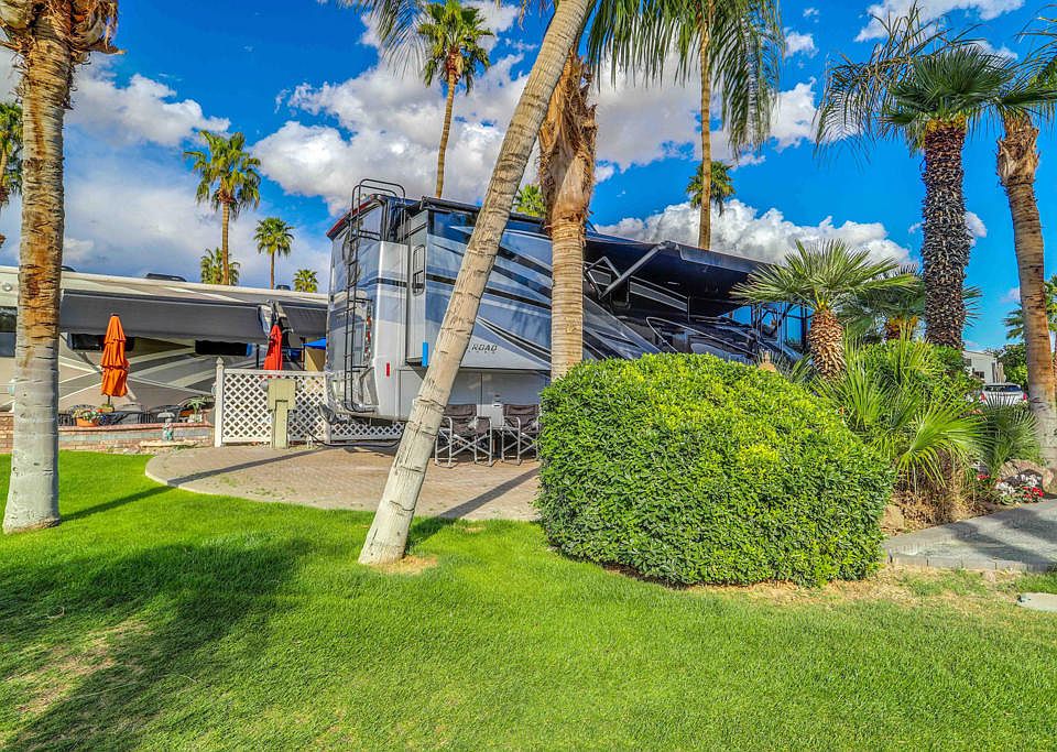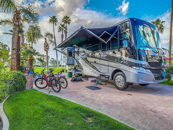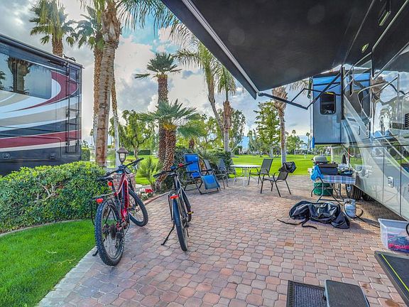 Location, location, location!! Gorgeous golf course lot that has been remodeled with pavers, concrete curbing and a stacked stone partial pony wall. This lot has amazing views of San Jacinto Mountain, the golf course and lake with fountain. Wide street for easy access, located in between both clubhouses and close to the entrance/exit. Outdoor Resorts Palm Springs is a Five Star RV Resort Community combining luxury with affordability. It is a guard gated resort that sits on 137 beautifully landscaped acres with 27 holes of executive golf, 10 tennis courts, 13 pickleball courts, 8 swimming pools, a fully equipped fitness center, espresso bar, sports bar, beauty salon/barber shop, full-service restaurant, convenience store, 2 club houses, activities, special events and so much more.
