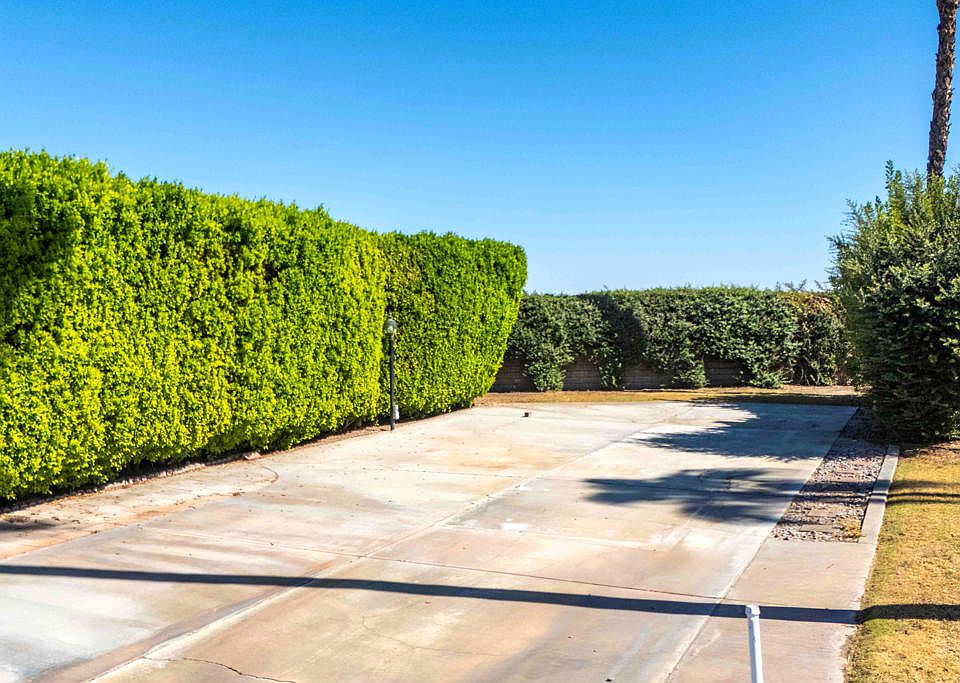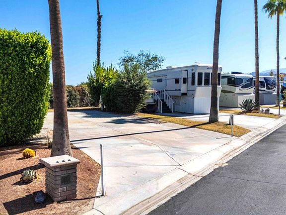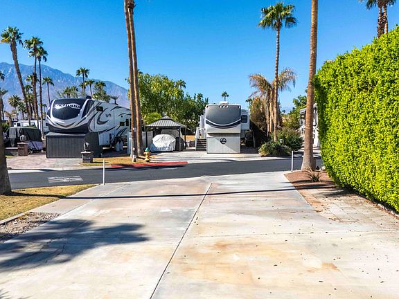 Experience privacy and tranquility with this serene wall lot, perfectly positioned near El Saguaro Clubhouse and numerous resort activities. The expanded lot is surrounded by mature hedges along the patio side, providing enhanced privacy, while a small greenbelt area behind adds to the sense of space. Enjoy breathtaking mountain views from both the front and rear, making it an ideal setting for relaxation and outdoor enjoyment. A perfect opportunity for those seeking a peaceful retreat with easy access to amenities.Outdoor Resorts Palm Springs is a Five Star RV Resort Community combining luxury with affordability. It is a guard gated resort that sits on 137 beautifully landscaped acres with 27 holes of executive golf, 10 tennis courts, 13 pickleball courts, 8 swimming pools, a fully equipped fitness center, espresso bar, sports bar, beauty salon/barber shop, full-service restaurant, convenience store, 2 club houses, activities, special events and so much more.