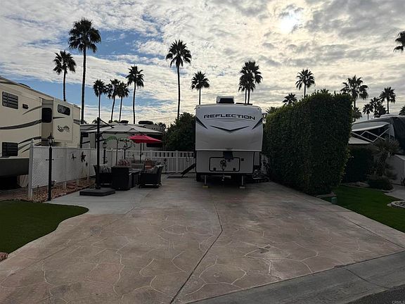 Lot 722 - nicely done with a color stamped RV pad w/ a fence and an outdoor kitchen. Lot is located in a preferred location that is very close to the El Saguaro clubhouse, pickleball courts and golf course starter. Outdoor Resort Palm Springs (ORPS) is a Guard Gated 5-Star RV Resort Community offering an active and luxurious lifestyle featuring golf (27 holes), tennis, pickleball, swimming and more! Two clubhouses, fitness center, beauty solan, La Roma Restaurant on campus, dog park and more! Sold separately patio furniture. Listing price is for Lot only.