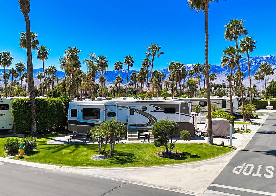 LOT ONLY. Discover luxury living in this lot/RV package featuring a beautifully landscaped corner lot with a large greenbelt to the side and mature ficus trees to the rear for added privacy. Adjacent to Satellite B for convenience. Outdoor Resorts Palm Springs is a Five Star RV Resort Community combining luxury with affordability. It is a guard gated resort that sits on 137 beautifully landscaped acres with 27 holes of executive golf. 10 tennis courts. 13 pickleball courts. 8 swimming pools. a full equipped fitness center. beauty salon/barber shop. full-service restaurant. convenience store. 2 club houses, activities, special events and so much more.