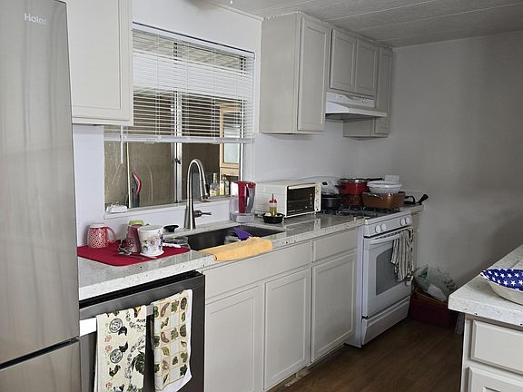 Step inside this beautiful 2 bedroom 2 bath split floorplan manufactured home located in a gated 55 plus age restricted community. You will find a large enclosed area(formerly screened in) large enough for another wonderful sitting area, sq ft not included in home. Enter in the home to find a large open front room that opens to the kitchen and dining area. Kitchen features a gas range, granite countertops, stainless steel dishwasher. Fridge is negotiable. Bedrooms are split. The one in the front has full bath off of it which also opens to the hall. The primary bedroom located at the rear of the home has full bath with separate tub and shower. Carport for 2 vehicles.