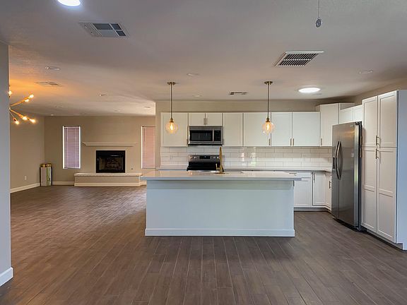 Gas fireplaceSingle level homeBlack hardwareQuartz counter topsStainless steel appliancesWood tile