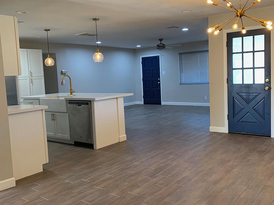 Newly renovated 4 bedroom/2 bath, 2160 square feet, single level home ready to rent September 1st or sooner. Scottsdale home with a touch of 1960's charm in a safe and friendly neighborhood. Open and spacious floor plan with new exterior/interior paint, bathrooms, flooring, and kitchen with huge back yard. Wood tile, stainless steel appliances, quartz counter tops, gas fireplace, and black hardware throughout. Ideal location in the heart of the valley between Old Town Scottsdale and downtown Tempe. Biking distance to Fate Brewery, restaurants, shopping, and spring training.