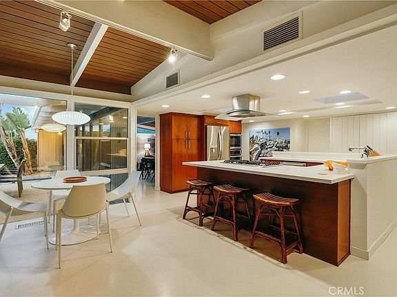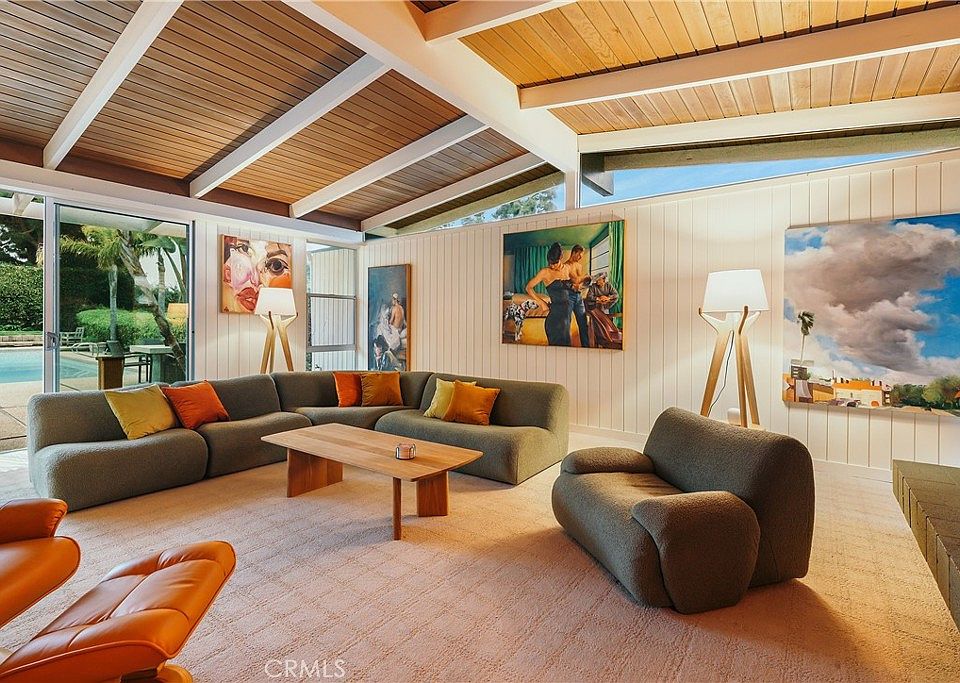 A timeless showcase of mid-century modern design, this iconic residence—designed by renowned architect Paul Wuesthoff—stands as a rare offering in the coveted Country Club neighborhood of Rancho Palos Verdes. Set on an expansive 17,020 sq ft lot, this 4-bedroom, 3-bathroom home is defined by clean lines, thoughtful indoor-outdoor flow, and timeless architectural detail—including a 3-car garage and a detached office that offers the potential to be transformed into a 5th bedroom or guest suite. Inside, the home showcases a blend of preserved originality and subtle updates. The kitchen retains its original tilework, a detail of architectural significance, now paired with newly updated flooring that honors the home’s vintage character. Thoughtfully designed with livability in mind, the home maximizes storage space throughout. A formal living room with fireplace and a separate family room off the kitchen both open to the private backyard oasis, creating the perfect backdrop for both entertaining and everyday living. Beyond the walls, the resort-like setting includes a large heated pool, an above-ground spa, a charming gazebo, outdoor shower, and a separate outdoor bathroom. The property also features mature avocado, orange, and lemon trees, all framed by newly updated landscaping in both the front and backyard—enhancing curb appeal and creating a lush, serene environment. Additional highlights include fresh exterior paint, solar panels on the roof, and a long, gated driveway that leads to an impressive garage and additional outdoor storage sheds for added convenience—offering privacy, style, and functionality. Located within the award-winning Palos Verdes Peninsula Unified School District, this home is not only an architectural gem—it’s a lifestyle.