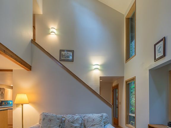 Private roomy 2048 sq. ft. SNOWLINE Cabin on 3 levels. Located in quiet area with 2 bdrms + bonus room downstairs used like a bedroom. Spacious kitchen open to dining & living area with tiled counter tops. Walk out decks on all 3 floors. Easy walk to amenities & short walk to trails. Has a rental history too. Furniture negotiable. Bathrooms on each floor for convenience.Downstairs 'suite' has separate entrance & cabinets, plus bathroom. Lots of storage in large closets, plus room for everyone.