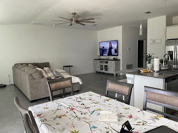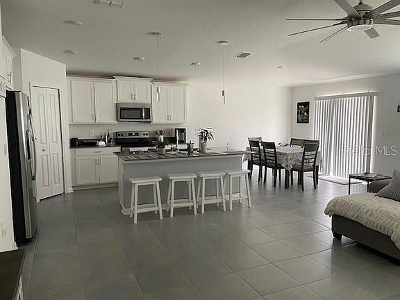 Motivated Seller! This 4 bedroom and 2 bathroom , one story-home offers open floor plan concept, tile floor throughout.The Primary bedroom has a walk-in closet and the ensuite bathroom has double sink and enclosed toilet. Conveniently close to the clubhouse, fitness room, pool, playground and dog park. The community features access to the lake including kayak floating ramp. The house has a solar system with the financing amount of $53.00 monthly transferable to the buyer. Major roads nearby to go to the parks, shopping plaza, restaurants and Disney.