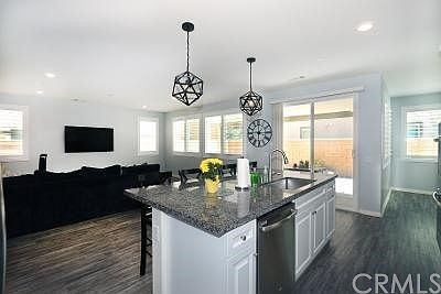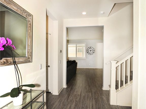 This beautiful home offers lots of living space with 4 bedrooms plus a flex (bonus) downstairs and 3 full bathrooms. Downstairs has a bedroom, full bathroom and the flex room. Gourmet kitchen with double oven, granite counter tops, Large center island, pantry and upgrade light fixture. Large dining room off kitchen, sunny and bright great room. Separate laundry room and entry into garage. Upstairs with Elegant master suite and walk-in closet, and another walk-in closet in master bath. Master bathroom with beautiful white cabinets, double sinks, make-up area separate tub and shower. Two more extra bedrooms one with a balcony and other full bathroom Two car garage plus extra tandem storage. Nice size backyard with covered patio and decking. Many extras such as upgraded fixtures and fans, solar panels, recess lighting, plantation shutters, upgraded white cabinets throughout and engineer wood flooring downstairs and custom carpeting with extra thick padding upstairs.