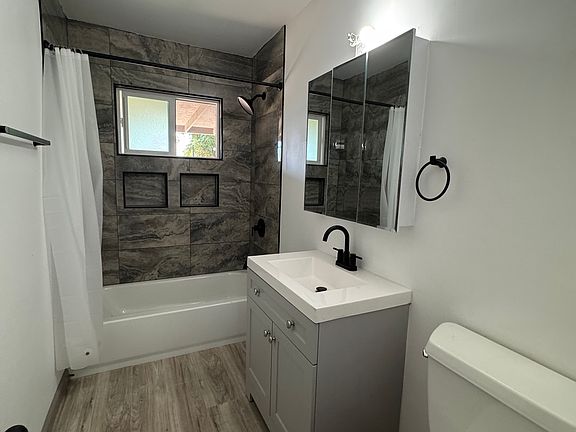 Fenced yardBrand new remodelCovered patioOff street parkingWasher and dryer hookupsWood laminate flooring