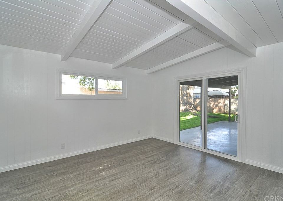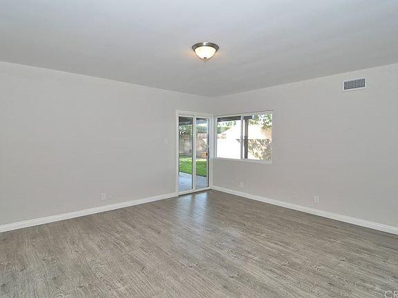 Beautifully updated and remodeled 3 bedroom and 3 bath single story home with an open floor plan set on a cul-de-sac. Great curb appeal and move in ready. Entrance opens up to a very spacious living room with high ceilings and a fireplace . Newer sliding door opens to a beautiful backyard with matured trees and grassy area for kids and pets to play. The elegant kitchen has newer cabinets and granite countertops, large pantry area, and a brick barbecue. Laundry room is located just off the kitchen. All three bathrooms has ben updated with stylish tile and tasteful vanities. Other features include laminated hardwood flooring through out the house, dual pane windows and sliding doors, central air condition and heat, newer paint in and out, newer fixtures, three oversized car garage with lots of parking. New garage doors with automatic opener.