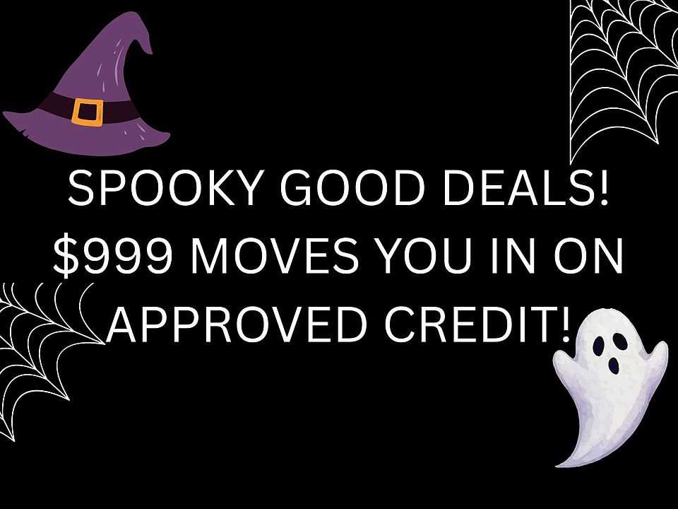 - Special offer! Boo-tiful Apartments, Fang-tastic Deals! $999 moves you in on approved credit! Stop by the office today!Expires October 8, 2025
