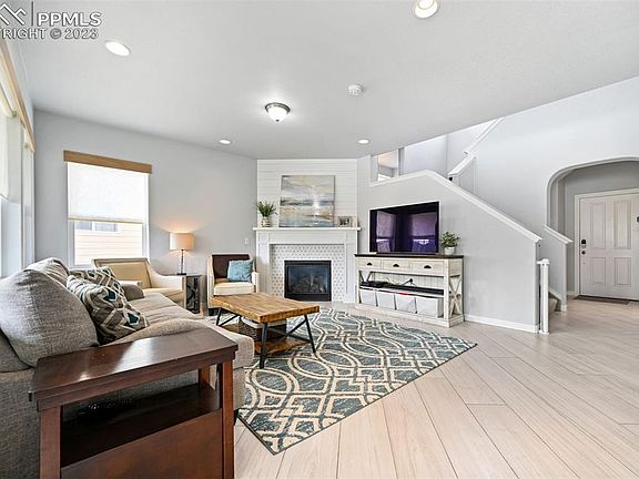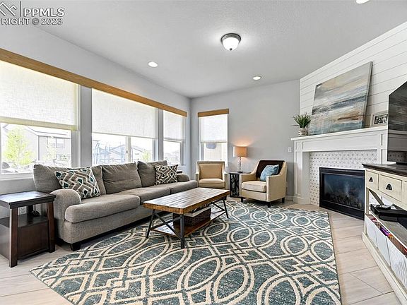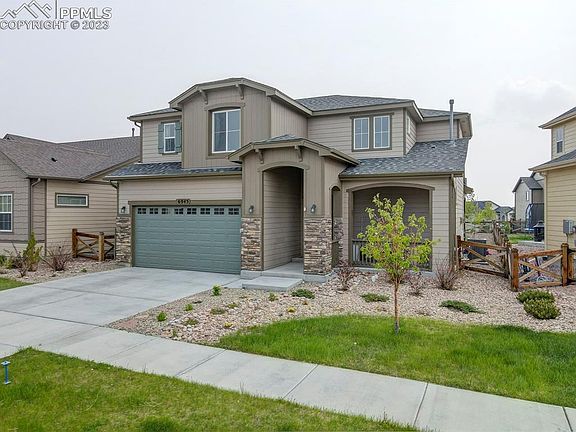 From the moment you walk in this beautiful home welcomes you with picturesque windows that fill the space with natural light. The living room has a wonderful gas fireplace and flows seamlessly with the kitchen area making the space perfect for entertaining. The kitchen boasts a barstool height center island, stunning gold fixtures, and stainless steel appliances. The dining area is spacious and provides walk out access through a sliding door to the beautiful backyard. Up the stairs entering the loft area that provides multiple options for a tv room, office, or play room. The master bedroom has its own picturesque windows filling the spacious room with natural light that flows into the five piece master bath and walk in closet. The upper level also hosts two more spacious bedrooms and another full bath. The basement is just as grand as the rest of the home with a large family room and wet bar. Just off the family room is the 4th bedroom and full bath. This property has it all and is minutes away from schools, hiking/biking trails, pools/parks, pickle ball courts and dog park. Located in the Banning Lewis Ranch community with amenities galore, including neighborhood schools, over 75 acres of parks/trails/open space, tennis courts, basketball court, rock climbing parks, zip-lines, access to pools, splash pad, water park, and dog park. Recreation center houses a fitness center and also regularly hosts classes and events for all ages. In the summer months, catch a neighborhood concert, festival, food trucks, farmers market or enjoy other regular community events.