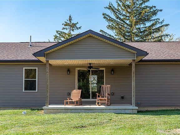 Welcome to one of Darke County's finest hidden treasures. Nestled far off the road, this 5.549 acre estate is teeming with mature trees, a huge pond, and 2 huge barns(48'x24' gravel floor & 40'x30' cement floor) that have water and electricity available, (one of which was used as a horse barn). Perfect for an outdoor enthusiast. The all-one-story brick/vinyl sided home with full basement features 4 beds, 3 full baths, and over 3100 sq ft of living space. The home was impeccably renovated in 2020 adding over 1800 sq ft. Starting with the gorgeous updated LVT flooring that flows throughout the entire home. Next, the remodeled kitchen featuring quartz countertops, 42" cabinets with crown molding, all new stainless appliances, a huge island, tons of custom Kraftmade cabinetry, a massive pantry and an abundant amount of space for dining and entertaining. The home boasts two primary bedroom suites, the first of which is enormous and has enough room for a king size bed, a full gym area, tons of dresser space, and walks out to the covered patio that overlooks the pond. It also features 2 huge walk-in closets, a private full bathroom with soaking tub, sinks with makeup counter, walk-in shower with double shower heads and all ceramic tile. The second primary bedroom is a very nice size, recently painted and has its own bathroom. The first-floor laundry area is nearly 14'x8'. The living room transitions nicely from the family room to the kitchen and has a woodburning FP. The other two bedrooms have been freshly painted and have beautiful new LVT flooring throughout. Features include: Roof 20. Septic 20, 2 water heaters 2020 and 2015, 2 furnaces: Trane Heat pump with electric back up 2020, forced air propane furnace, LVT Flooring, paint, 2 sump pumps, ring doorbell, new barn doors, generator hook up, shooting backstop, wood burning fireplace, Bluetooth speakers. This home is truly is a sight to behold. Make your showing today!