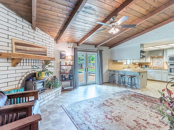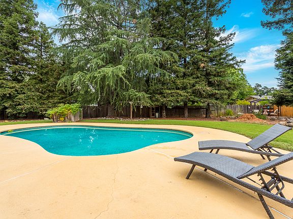 Beautiful 3 bed 2.5 bath home in Wooded Acres with a SPARKLING POOL! From the grand double door entry you will be greeted by soaring vaulted ceilings with exposed beams, separate living and family rooms, corner brick fireplace, arched doorways and spacious dining area. The kitchen boasts SS appliances, ample storage and counterspace and breakfast bar. Outback is your own private oasis with beautiful lush landscaping, mature redwoods and expansive lawn area. Covered patio, gated boat/ RV parking and large fenced back yard. This home is a must see!