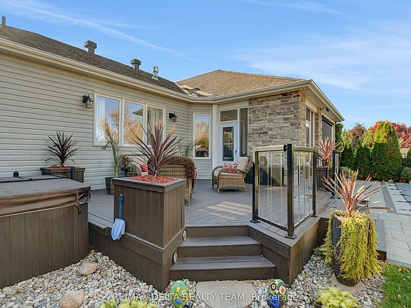 Luxurious Bungalow with 5 Bedrooms, Designer Finishes & Resort-Style Backyard Oasis! Welcome to this stunning 3+2 bedroom, 3 full bath builder model bungalow, perfectly situated with no rear neighbours and a beautifully landscaped yard, offering complete privacy and luxury living inside and out. Step into a spacious foyer and experience the bright, open-concept design where large windows fill the living and dining areas with natural light. The heart of the home is the chef-inspired kitchen showcasing High-end stainless steel appliances, Oversized granite island with extra storage, Pantry with pull-outs and valance lighting. Seamless flow into the inviting family room with cozy gas fireplace. From here, patio doors lead to your private outdoor paradise featuring a four-season bonus room complete with built-in kitchenette, Napoleon BBQ, and gas fireplace, ideal for year-round entertaining. Enjoy summer days in your heated in-ground pool or unwind in the hot tub, surrounded by lush gardens, mature trees, stylish interlock patio, and a large deck. The ultimate backyard retreat. The spacious primary suite is a true escape, boasting Updated Spa-like ensuite with glass shower & freestanding tub, Double vanity with custom cabinetry + Walk-in closet with built-in organizers. The fully finished lower level offers incredible flexibility with 3 large rooms (perfect as additional bedrooms, gym, or media room), a full bathroom, and generous storage space, all crafted with attention to detail. Premium finishes throughout including: Hardwood floors, Tile in wet areas, Crown moulding, 9ft Smooth ceilings & much more.This home is truly a rare find, blending elegant indoor living with resort-style outdoor space. Whether you're hosting guests or seeking a peaceful sanctuary, this property delivers it all. See Attached list of extra features and inclusions.