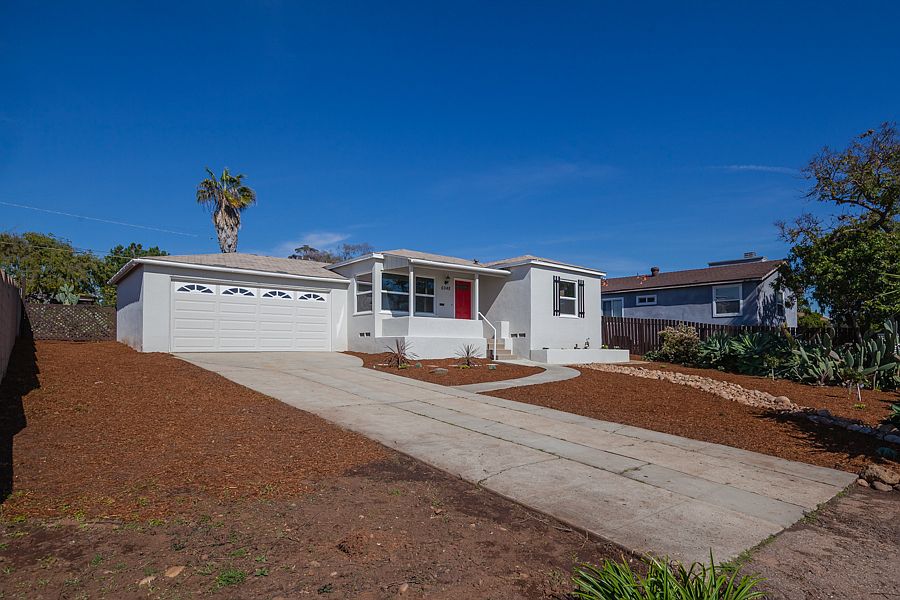 La Mesa charming mid century renovated home! Classic front porch. Light and bright with lots of windows. Family room with fireplace, could be used for large formal dining area. Galley kitchen with breakfast bar, new appliances. New windows thru out the house, new flooring. 2 car garage, Large yard, patio and fire pit area. Located near the freeway, college and shops. Waterwise landscape in front. Large area in back room for garden, toys?