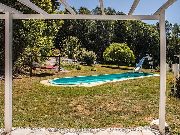 Steeped in history yet thoughtfully updated, this grand Colonial in Pittsford, Vermont, combines timeless charm with modern convenience. Pittsford is a welcoming community known for its small-town feel, scenic beauty, and easy access to Rutland, Brandon, Middlebury, Lake Bomoseen, and Killington Ski Area. The newly renovated kitchen is a true centerpiece with vaulted ceilings, original beams, radiant brick flooring, a striking center island with stone countertops, upscale appliances, and a cozy sitting area with a convenient half-bath. A warm living and dining area with a woodstove features a large picture window overlooking the backyard oasis. A handsome family room with built-in bookshelves, a private office, and an adjacent ¾ bath complete the first level. Upstairs, four inviting bedrooms with wide pine floors share a full bath. The private five-acre lot is designed for entertaining with a sparkling in-ground pool and pool house, a welcoming firepit, and a unique covered Pig roast area. Fruit trees, grapevines, a blueberry patch, and a thriving vegetable garden highlight the Vermont lifestyle. Numerous improvements add peace of mind, including updated wiring with 200-amp service, PEX plumbing, spray-foam insulation, and generator hook-up. Blending original craftsmanship with thoughtful upgrades, this special property offers a rare chance to own a piece of Vermont’s history, beautifully tailored for today’s lifestyle and ready to enjoy in every season. LIVE VERMONT!