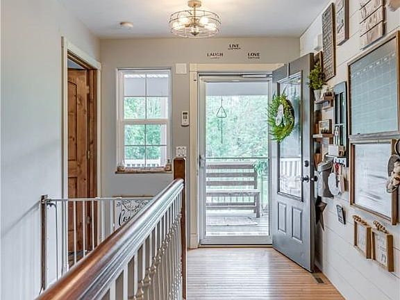 Talk about room to grow in Medina! Beautifully landscaped colonial on just a little over 6 acres! The covered front porch is so inviting for the fall weather coming. As soon as you enter your new home it has an opening to the lower level, or the hallway leads you to your open concept living room and kitchen. The high ceilings and lots of windows make it so bright indoors. The kitchen has so an island for extra seating and storage. Great to make the gatherings flow into the living room. Tile backsplash over the sink with built in shelving for your fancy plates, room to decorate the top of the cabinetry and so much counterspace with recessed lighting. The dining room area has more cabinets and a small counter space. Barn doors lead to what could be used as a family room open to the deck. Master Suite has barn door to enter and an on-suite bath with standup shower. Another nice size bedroom, full bath, and 1st floor laundry on the first floor. 2 more bedrooms, full bath, and another laundry room with built in shelving on the lower level. Outdoors you have so much land to play on. A barn is on the property perfect for your goats, a horse, pigs or other farm animals. These sellers have also raised bees in the past, the opportunities are endless. This home is what country dreams are made of. You need to make this yours!