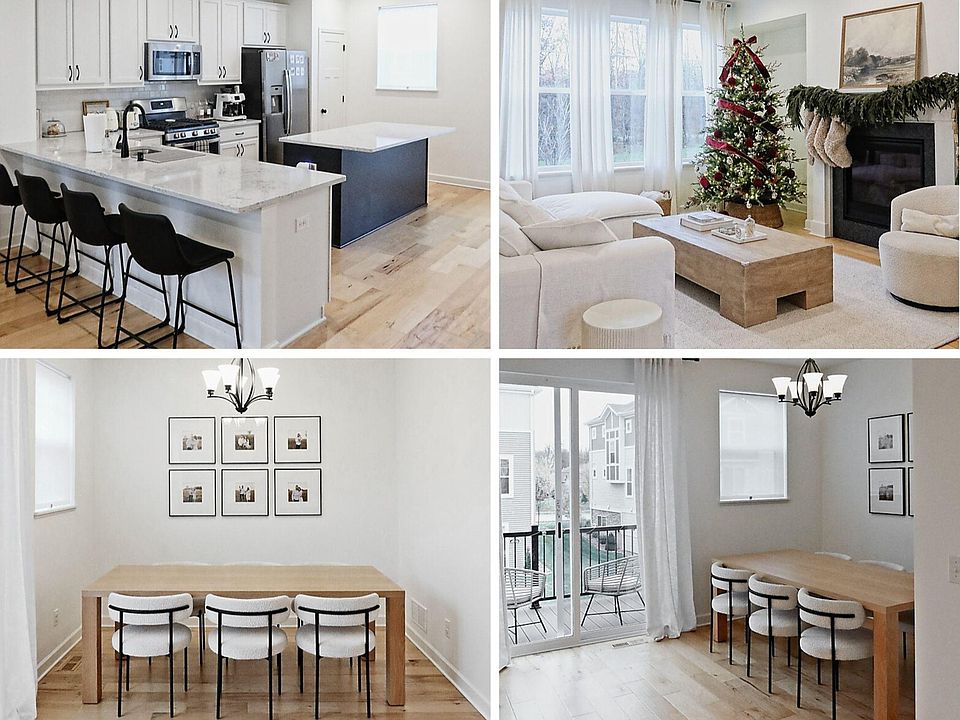 Gas fireplaceHickory hardwood floorsPark-view townhomeModern lvp flooringPeaceful deckPrivate lotFloor-to-ceiling windows