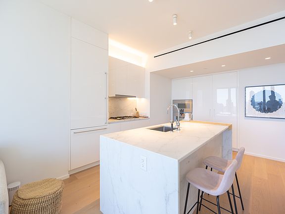 Floor-to-ceiling windowsNatural lightMotorized shadesGaggenau appliancesClean white paletteBreathtaking riverfront viewsExpansive bedroom suite
