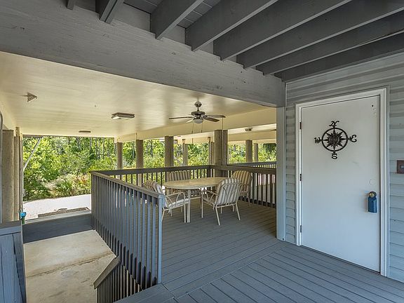 Gulf access on the mouth of the Ochlocknee River. Includes boat slip (#13) plus high ceiling oversized carport to store your boat. Immaculately maintained grounds by HOA; community pool with covered veranda and boat marina. Public beach and boat launch close by. Multi stop elevator; screened porch; plus party mezzanine; storage room plus workshop; gas FP, magnificent upstairs master bedroom and luxury bath with garden tub, separate shower, walk-in closet; guest suite downstairs; guest powder room. Shows like a model, fully furnished down to the linens and kitchen utensils, upscale equipped kitchen with separate ice maker; washer and dryer. Tastefully decorated and furnished with premium decorator, no popcorn ceilings. A 2nd boat slip with a lift (#21) for sale at $55,000.