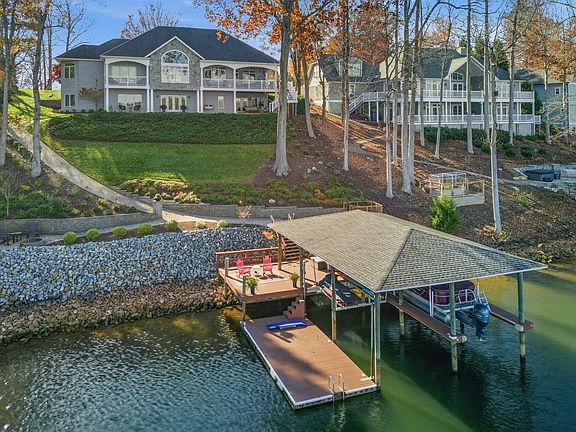 Stunning. This home has it all, from stunning lake views, chef's kitchen, thoughtfully maintained maturelandscaping and covered lakeside porches to cozy nooks and a fire pit for your morning coffee. Dinner for a crowd? Easy! Dinner for 2 at the kitchen island? Done. The layout of the main level isperfect with a guest or in-law suite on one end and the primary suite on the other. Second staircase from the kitchen to the basement is a great touch, as is the lake level bathroom with direct access to theoutside! Rec Room perfect for entertaining with 250 bottle wine storage unit & bar area. 4-Bedrooms, 4.5-Baths. Whole house generator & ample storage. Dock is oversized with 2 covered slips, 2 storage areas & DEEP water.