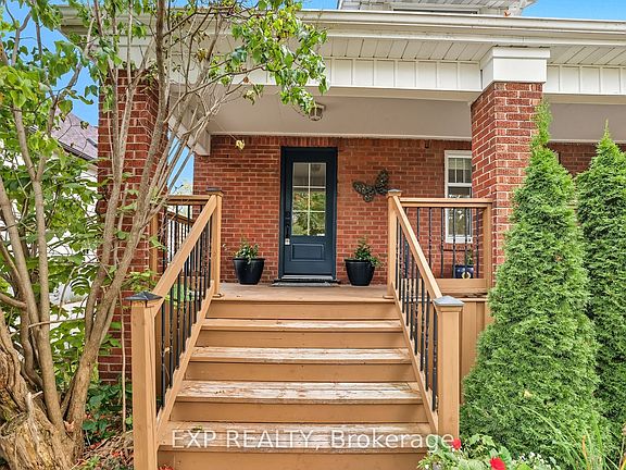 Set on a quiet, treelined street, this brick home welcomes you with a tidy front garden, a stone walkway, & a large, sheltered front deck, perfect for morning coffee under the mature maples. From this elevated perch, you'll enjoy a friendly, look-out-for-each-other community, with sidewalks that make it a genuinely good walking neighbourhood. In a great school district & surrounded by well kept homes, the setting feels calm, connected, & inviting from the moment you arrive. The main floor blends charm & function with a partial open-concept layout that's perfect for entertaining. A bright Living Room with large windows & timeless trim flows to the elegant Dining Room, highlighted by a full built-in China cabinet. At the back, the updated gourmet Kitchen shines with high-end '23 appliances, quartz countertops, solid-wood cabinets, subway-tile backsplash, pot lights, & updated tile flooring, plus a convenient walkout to the covered deck so cocktails can move effortlessly from prep to patio. Upstairs hosts 3 bright bedrooms & a full 4-pc bath, all with warm wood-style floors & generous windows. The bathroom blends cottage charm with modern updates: a Bathfitter tub/shower combo, fresh Moen fixtures & sink '23, & updated tile flooring '15. The versatile 3rd bedroom is a standout, complete with a built-in desk niche & a fun ladder leading to a cozy loft for reading, play, or extra storage. Thoughtful closets & shelving keep everything organized, making this level equal parts stylish & practical. Out back, a large, sheltered deck off the kitchen steps down to a stone patio & gazebo, wrapped by perennial beds, a flowering crabapple, & mature greenery your own secret garden. The fully fenced yard is perfect for pets & play, with the patio & all gardens professionally installed by Michal Durham Landscaping. Practical updates elevate the exterior, too: gutter guards '25, all windows replaced in the early 2000's, plus both exterior doors updated in '24. Just move in & enjoy.