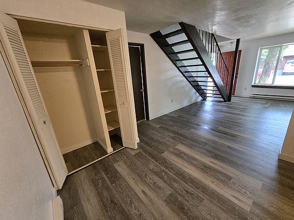 End unit on a 4 plex. Quiet dead end road with off street parking and garage. The bedrooms are very large and there is a large grass yard behind the building. Pet friendly. New flooring and kitchen update. Screening criteria includes but not limited to 2.5 x income, debt to income ratio, collections, rental history, violent criminal history, length of employment. One year lease that transfers to month to month at the end of the term. Pet friendly maximum 2 total pets. No smoking indoors. Tenant pays all utilities.