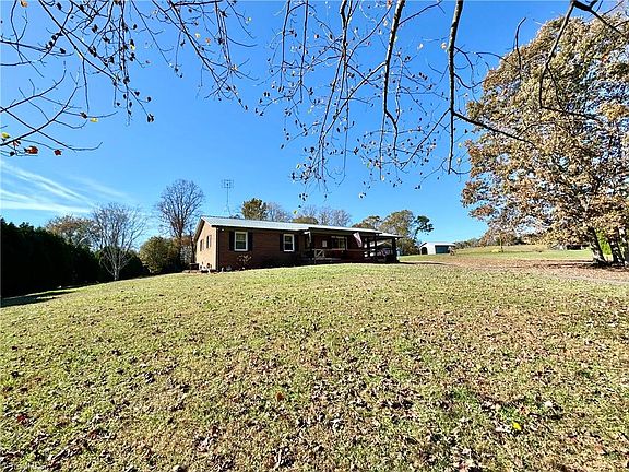 This charming brick home offers a serene country setting with stunning long-range mountain views, perfect for those who appreciate nature. It features three bedrooms, including a small bedroom equipped with stackable laundry, and two full baths. The property spans 1.1 +/- acres and includes a one-car carport, along with a durable metal roof installed around 2014. Accessibility is enhanced with handicap ramps at both the front and back entrances. The dining area opens up to patio doors, providing a lovely space for outdoor enjoyment. Additionally, the full basement includes a garage door and a second laundry area, adding convenience and extra storage. Located just minutes from Stone Mountain State Park, you'll have easy access to hiking trails and local vineyards, making this home an ideal retreat for outdoor enthusiasts.