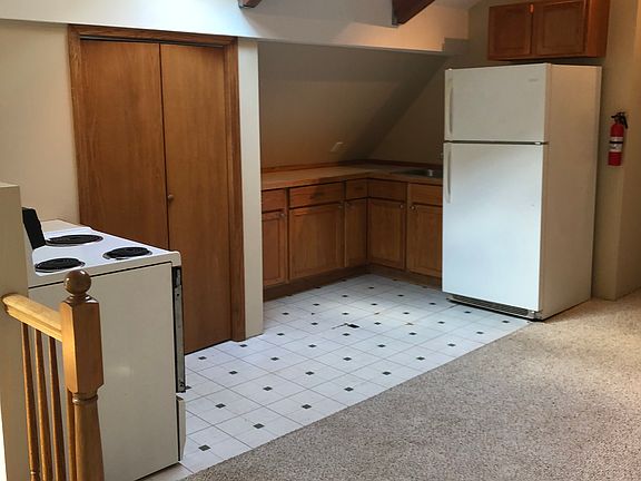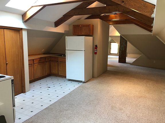 Charming upper unit in Victorian Style 4 Plex. Unique unit with beamed ceilings , fun space, and private porch.