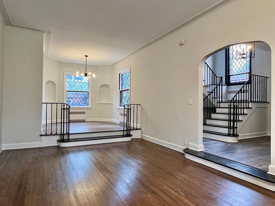 Newly Renovated Large Charming Russian Historic Home on the border of Fort Lee, Cliffside Park, and Edgewater with fireplace and living room. This large 4 bedroom plus den, 4.5 bath house is located 1 block to NYC transportation and minutes from George Washington Bridge. Perfect for NYC Commuters or an expanding family. The home features original stone vintage exterior with a solid front wood door. The interior has a large entry foyer with original stained glass, with newly finished hard wood floors throughout the home, original tile and a large kitchen with separate dining room. This Unique home features include outdoor terrace and sunroom, full finished basement with bar, Russian sauna, bathrooms with large soaking tubs, cedar closets, plenty of storage space, backyard, Washer/Dryer and more. Also included is a large spacious 2 car garage with additional workshop space. Additional storage and office space available for additional Rent.