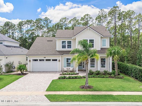 Welcome to 695 Palm Crest Drive, a beautifully designed 5-bedroom, 3.5-bathroom home offering nearly 3,400 square feet of luxury living in the heart of Nocatee. Tucked away at the end of the street on an oversized lot with no neighbor on one side, this residence offers rare privacy alongside modern convenience. The 3-car garage provides ample space, while the open layout showcases a chef's gourmet kitchen complete with smart appliances (including a built-in air fryer), quartz countertops, double-stacked cabinets, and an integrated ledge sink designed for both beauty and function.