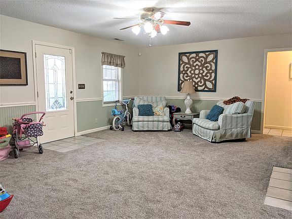 Home resting on 3 acres very private. The floor plan is open and airy with the master suite on main floor, large walk-in closet, double vanity, jetted tub, tile shower. Carolina room over looks the fenced backyard, the covered porch is perfect for entertaining. Large carport for RV with electical outlets, two additional storage buildings for storage.