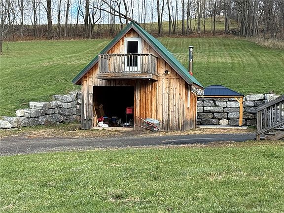 Outside, you’ll find a beautifully crafted retaining wall framing the outbuilding—perfect for use as a workshop, studio, office space, or extra storage. An outdoor wood-fired furnace offers another efficient heat source and adds rustic charm to the property. Take in the scenic mountain views and enjoy the sense of calm that only country living can provide.