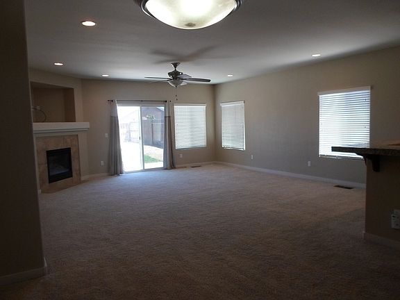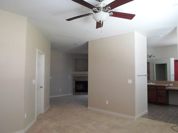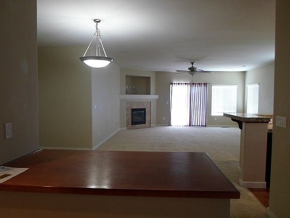 Light & bright floor plan; Large great room w/ fireplace, ceiling fan and slider to patio. Adjoining dining w/ built-in wine rack. All open to the upgraded kitchen with granite, hardwood floors, breakfast bar, breakfast nook, pantry and all appliances.. Separate study (not included in room count). The master suite includes a sitting area with gas fireplace, walk in closet, garden tub with separate shower and double sinks. Two additional bedrooms have large closets. All bedrooms have ceiling fans. Large, green fenced backyard with patio, storage unit. Sprinklers on timer (front & back). No smoking, no pets. Good credit.