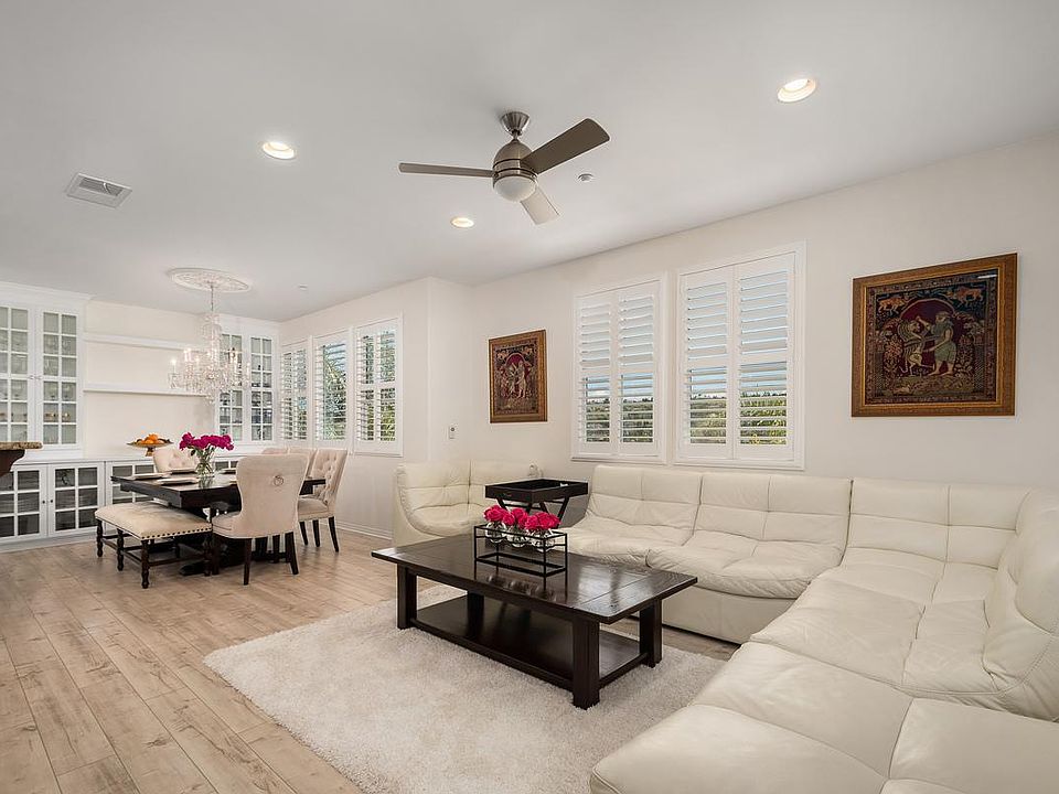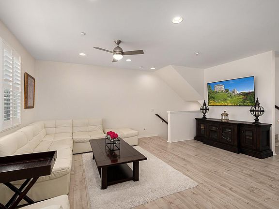 Rental Property: $5,800/Month. MLS #: NDP2510034. This stunning three-story home in the Avellino community of La Costa Greens features four spacious bedrooms, three and a half bathrooms, and an open-concept layout designed for modern living. The chef's kitchen boasts granite countertops, white cabinetry, and stainless-steel appliances, seamlessly connected to the dining area and family room.
