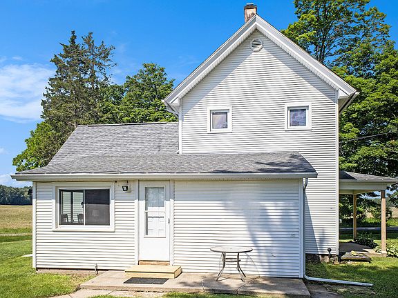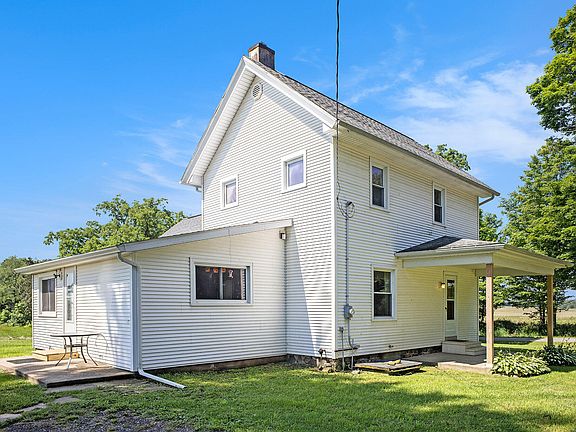 Charming farmhouse on 2 acres in a peaceful country setting! This home features 3 bedrooms, including a primary bedroom on the main floor. Enjoy the convenience of main floor laundry and a spacious living room. The updated bath adds comfort to this lovely home. Outside, you'll find a detached garage, mature trees, and plenty of room for gardening or outdoor activities. A perfect spot for country living!
