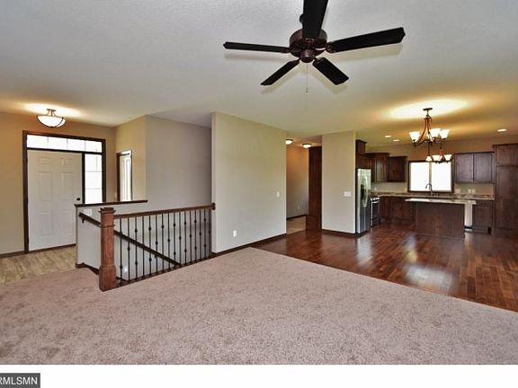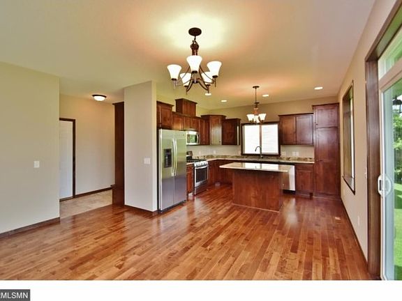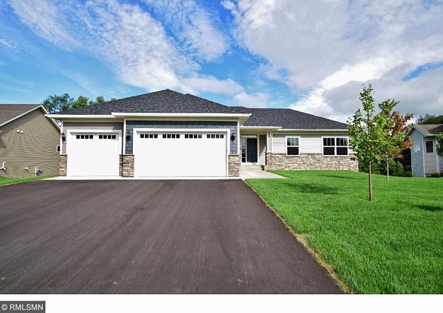 2 BR 2 BA walkout rambler w/fireplace, 1471 sqft on main floor completed new const. Outer edge lot backing to wild area w/wooded nature views. Has solid woodworking, ceramic tile, granite tops. Custom cabinetry throughout, solid wd flrs. Lg master suite w/dual sinks and lg walk in closet. Custom lockers to help stay organized. All appliances included. Lwr lvl walkout is set up for 2 BR, BA w/sauna, and family room. Sod and irrigation. Turn key new home.
