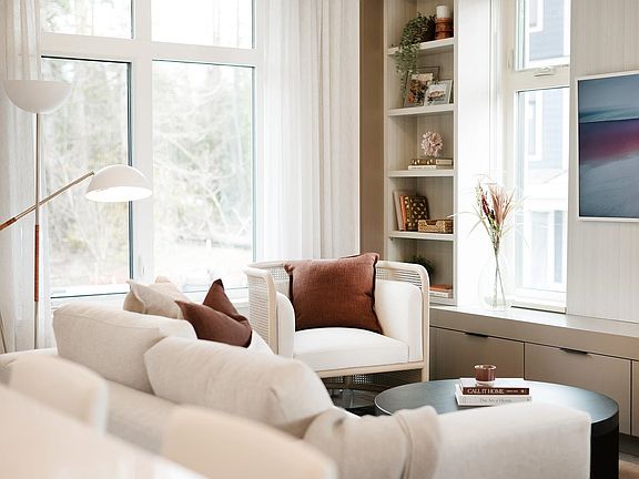 Open-concept main floorL-shaped kitchenLarge islandQuartz countertopsSide-by-side garageFits two carsSide-by-side washer and dryer